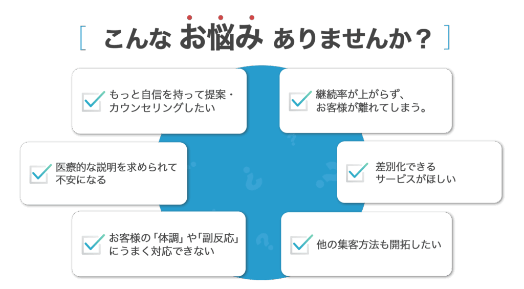 既存メニューに“医療の視点”を加えるご提案が可能です。 信頼感のある体験づくりで満足度と差別化を高めます。
