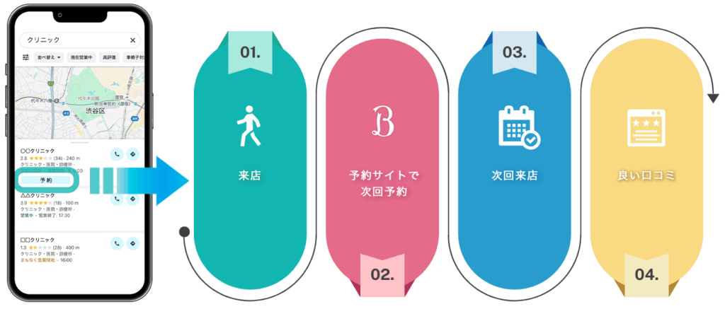 Googleマップの検索や予約導線を整え、ユーザーにとってわかりやすくスムーズな仕組みを構築。継続利用やサービス満足度の向上につなげます。