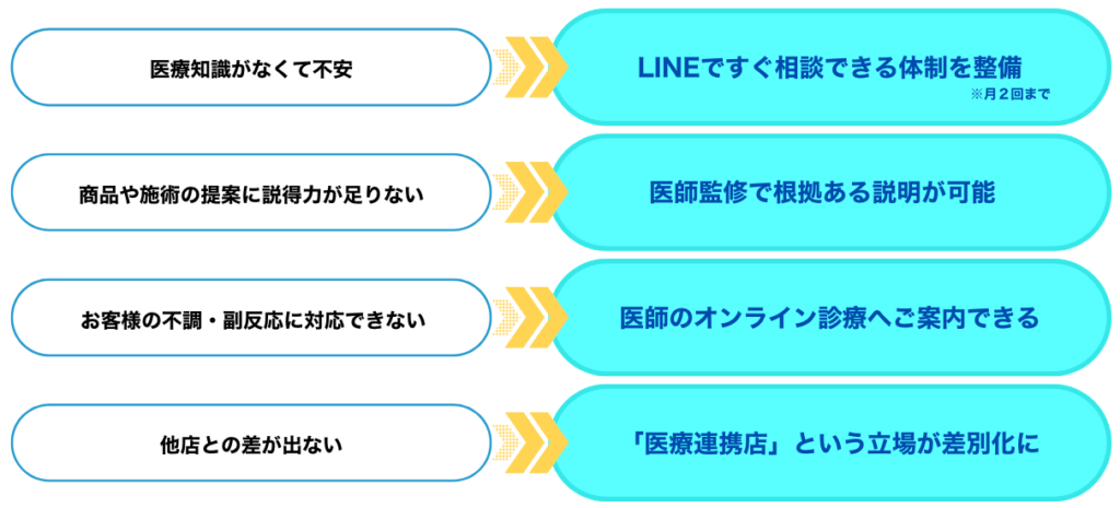 医療機関との連携体制を活かし、店舗の信頼性向上と差別化を支援します